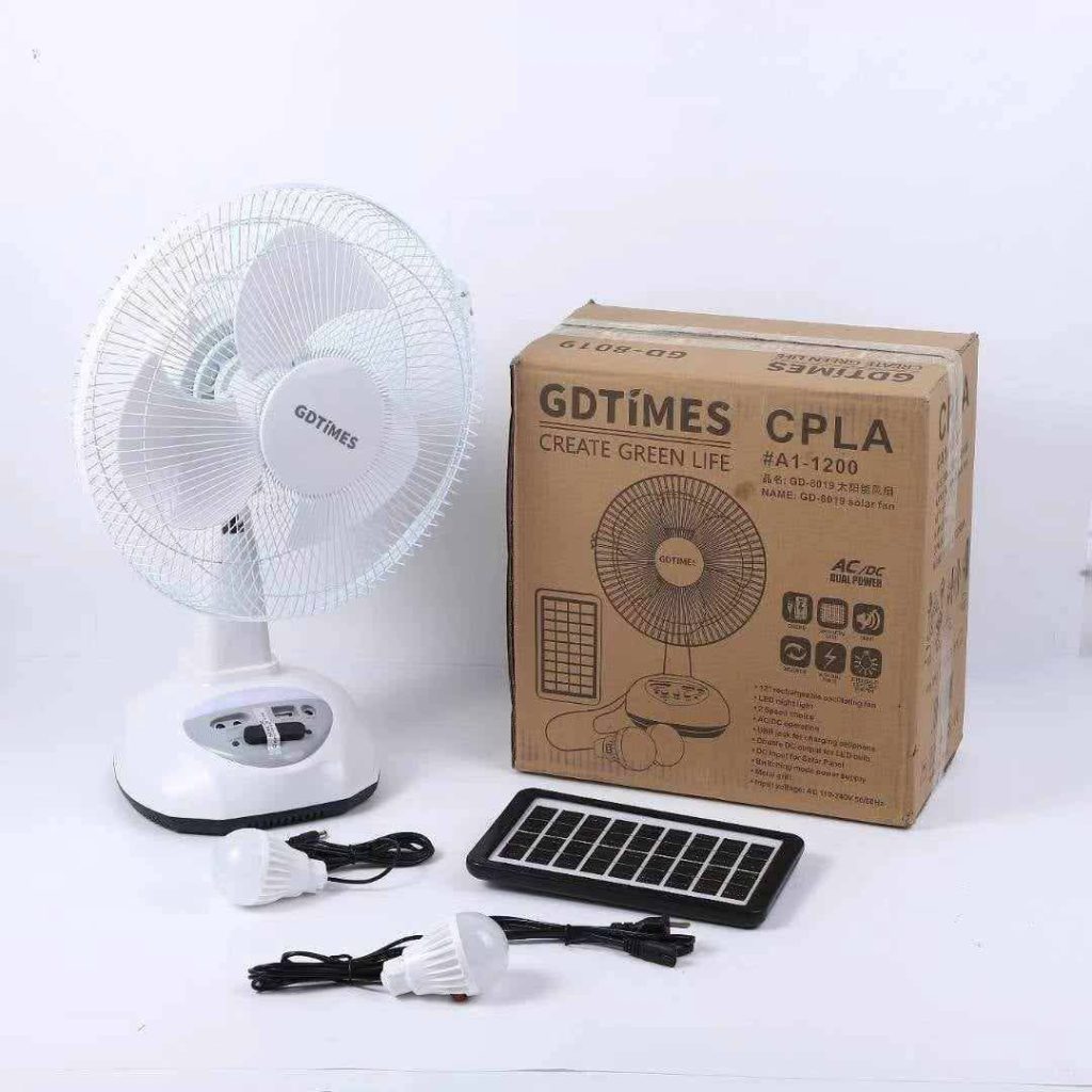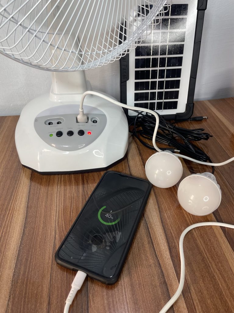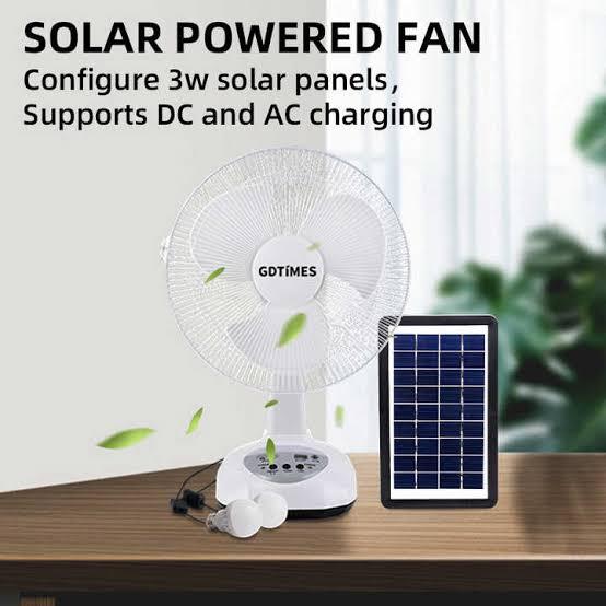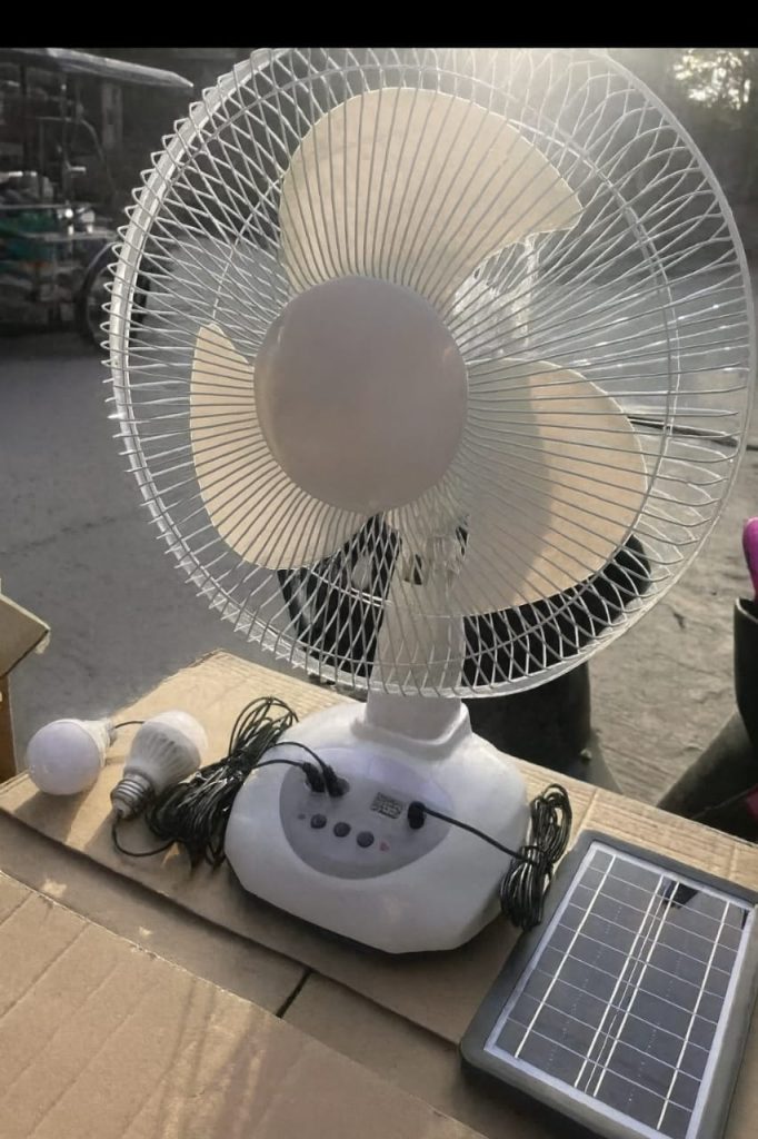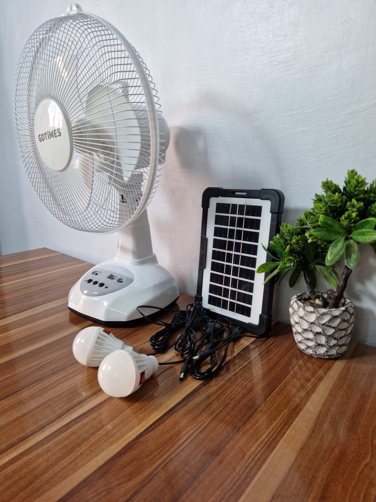 Imagine a solar fan, 2 light bulbs and power-bank built in a fan