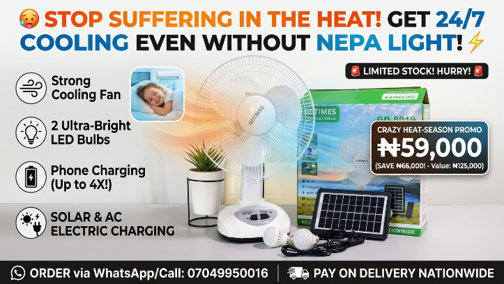 Your phone will NEVER go off because NEPA failed you. Keep your phone online for calls, WhatsApp business, banking, and emergencies. The fan doubles as a power bank, saving you extra cost.